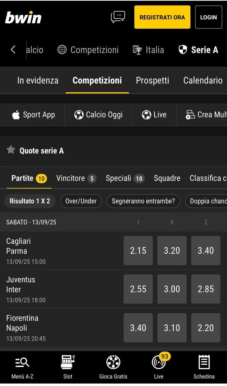 Uno dei motivi per cui bwin resta competitivo è il livello dei suoi payout, spesso superiori alla media del settore. Sul calcio le percentuali possono arrivare fino al 95%, soprattutto nei top campionati come Serie A, Premier League o Champions League.
