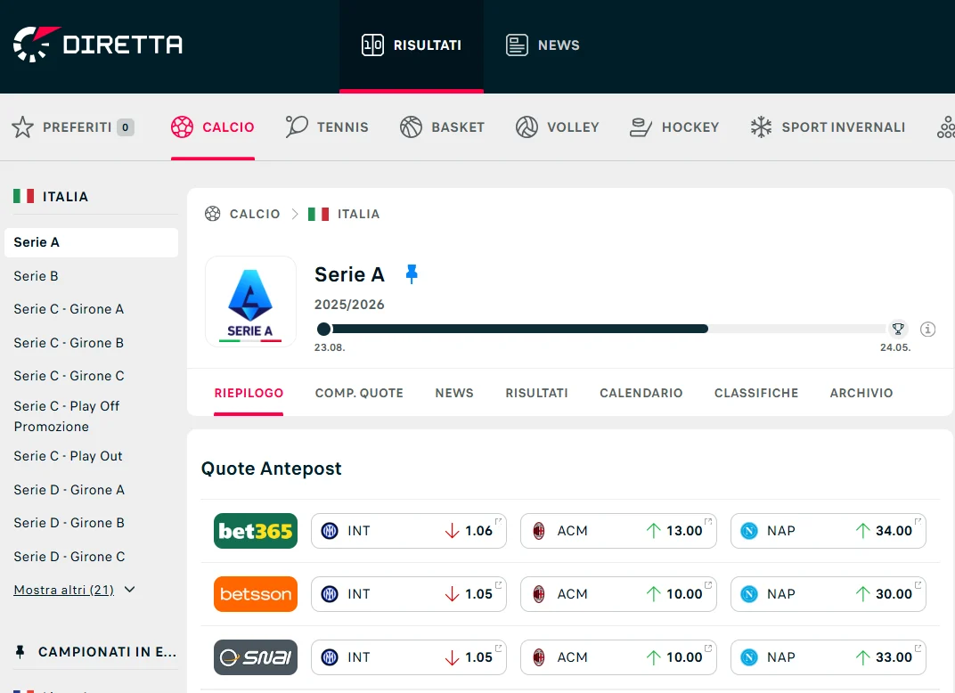Più analizzi, più aumentano le possibilità di profitto con questo mercato. Trovi tutte le statistiche che ti servono su Diretta.it.