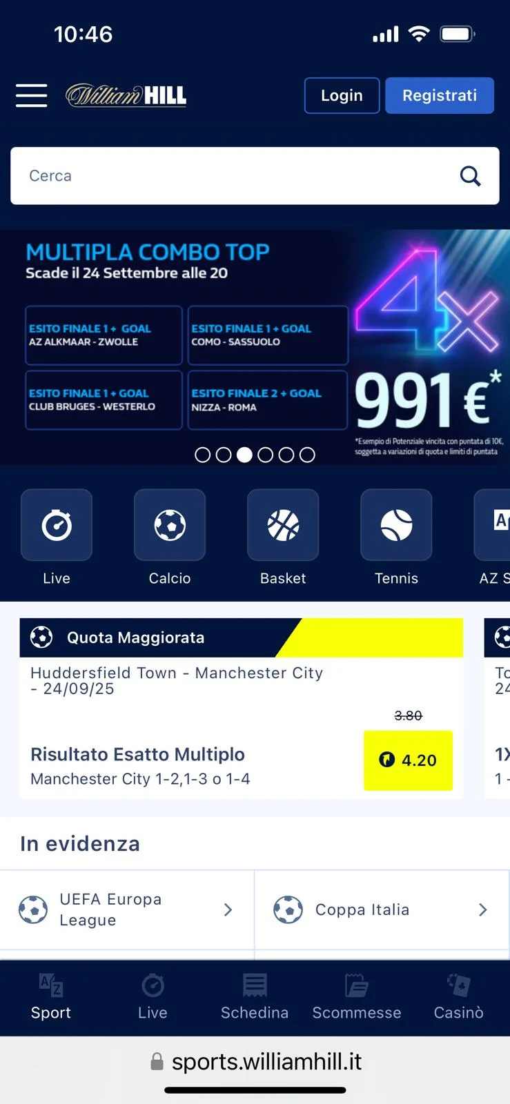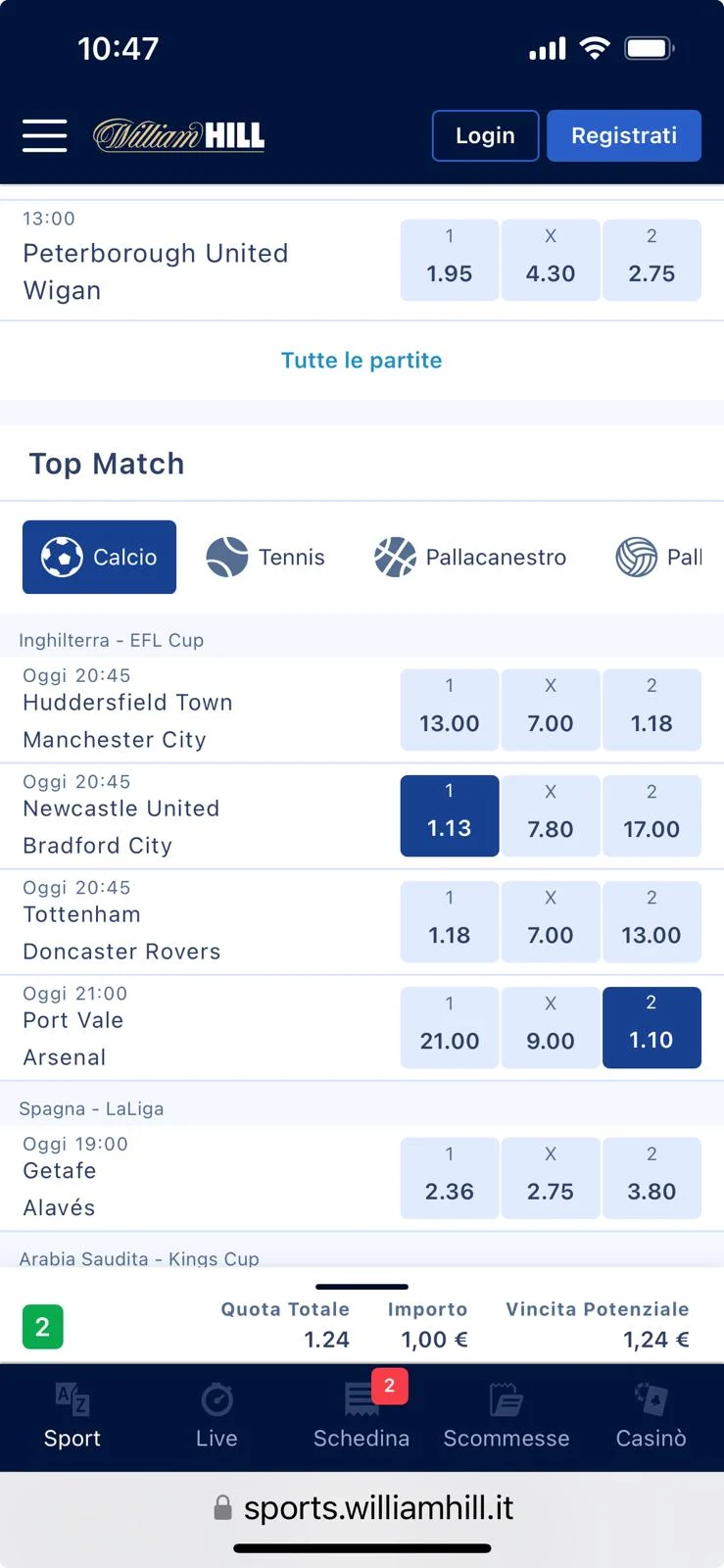 - 4.Palinsesto sportivo e mercati di William Hill